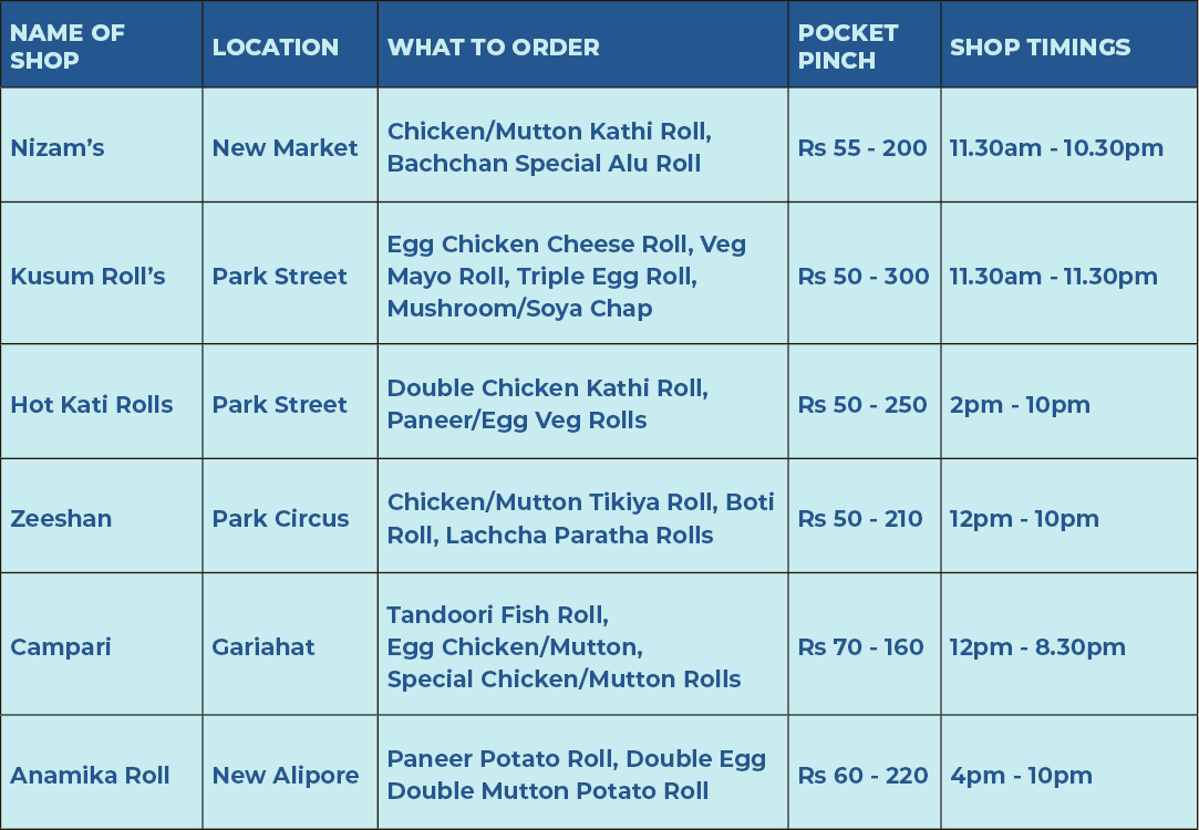 So here's a ready reckoner for a few must-try roll stops spread across the city.