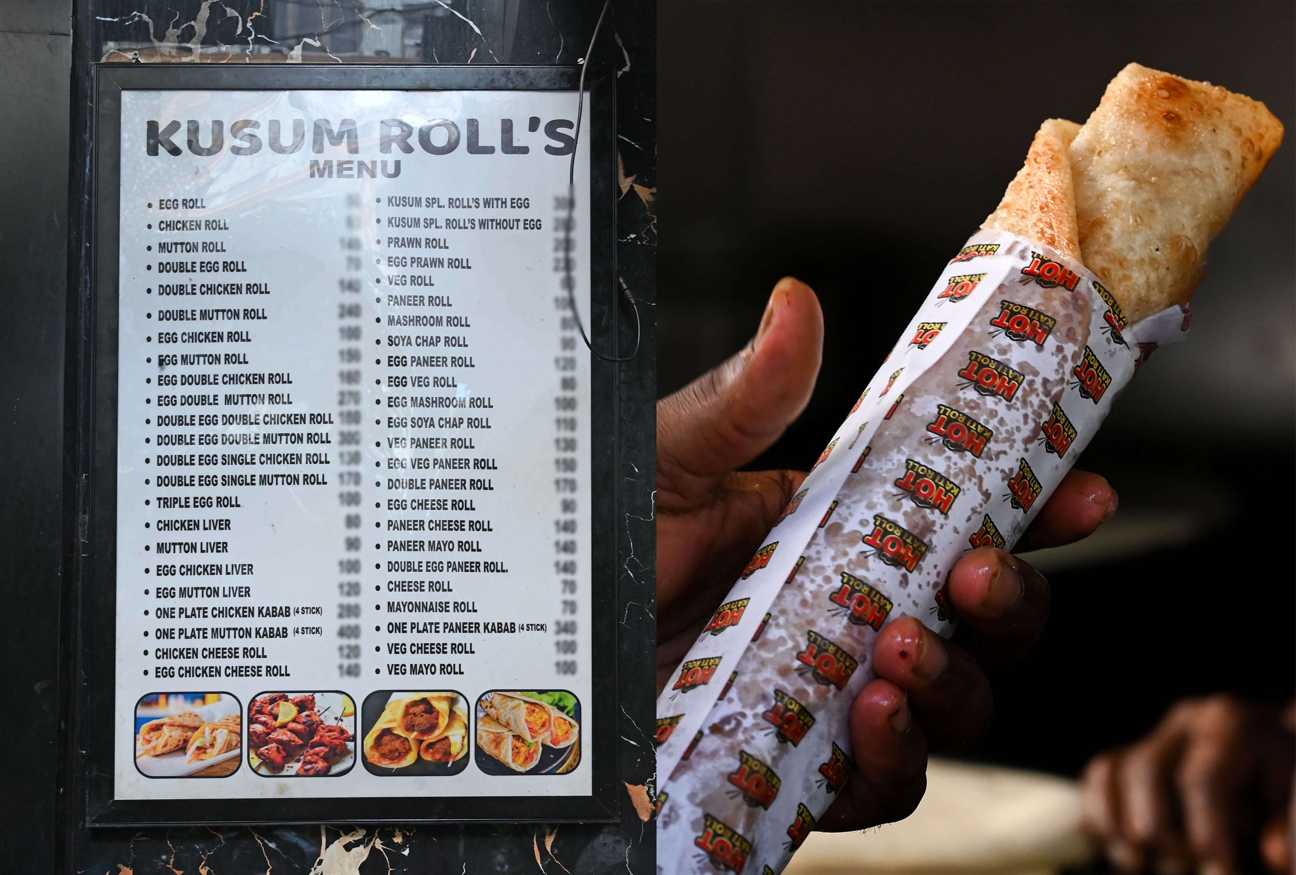 Prices at Hot Kati Rolls go from Rs 50 to Rs 250.
