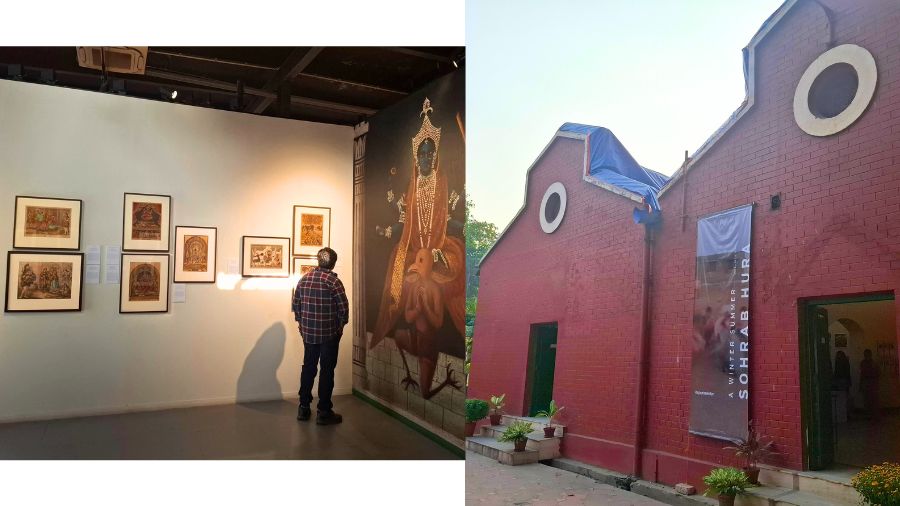 Stepping out from the cell blocks, we encountered a structure reminiscent of a European barn, now converted into an Exhibition Hall where works by contemporary artists, across all mediums are displayed for viewing. Further along, is a permanent exhibit showcasing traditional Bengali patachitra paintings — oil and gouache on scroll — depicting myths and everyday life from a bygone era. The transition from prison corridors to vibrant folk art felt deliberate, if not stark.