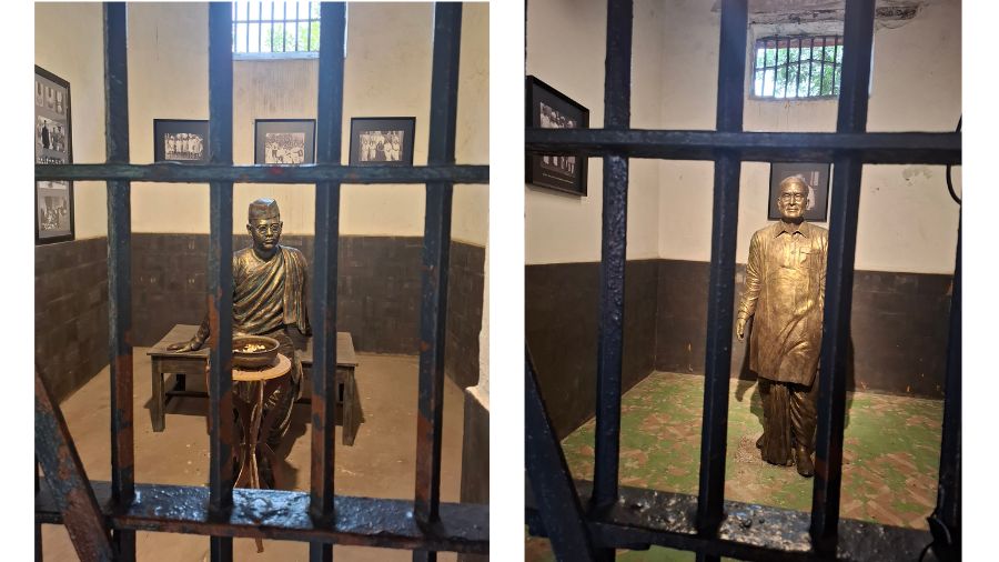 From there, we walked to the Cell blocks — from chamber to chamber, peering into tiny bricked spaces. Each bore a plaque naming its former occupant next to solid iron grills. Names we had encountered in school textbooks and on street signs: Jawaharlal Nehru, Netaji Subhas Chandra Bose, Sri Aurobindo, Chittaranjan Das, Dinesh Gupta and Kazi Nazrul Islam.