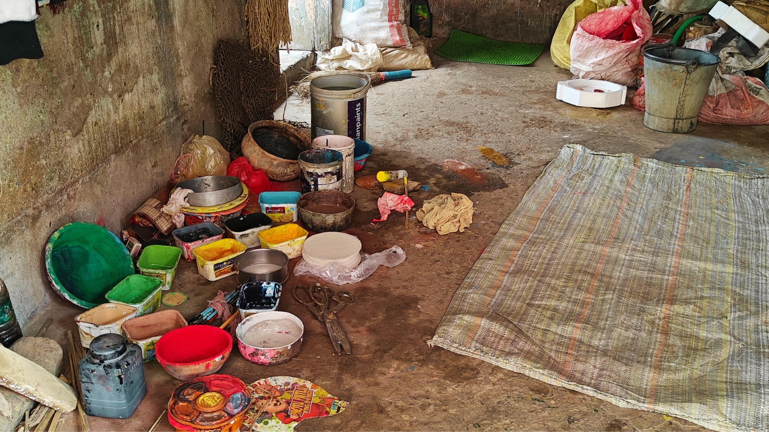 The cards are made by layering markin cloth, a kind of durable cotton. Eight to 10 layers of cotton fabric are pasted together using natural adhesives such as glue from tamarind seeds and sirish plant. These are then painted with natural colours extracted from vegetables, leaves and flowers. For instance, beet is used for red, yellow is obtained from raw turmeric and black from burnt charcoal.