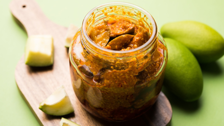 Every region of India has its own typical pickles. In Bengali, one of them is Aam-Tel — a simple pickle of mango pieces drowned in mustard oil with a tempering of mustard seeds or paanch phoron.