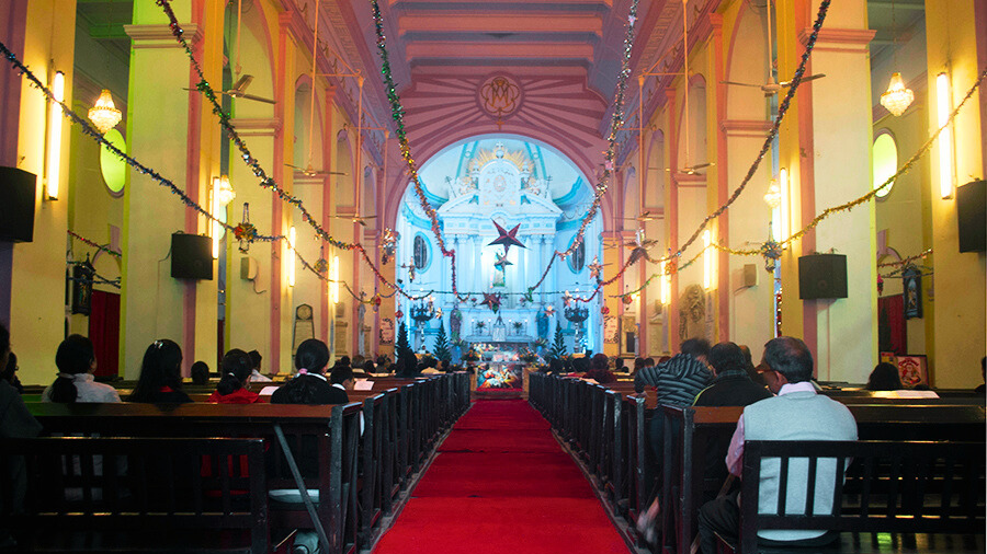 Armenian Church of the Holy Nazareth, or simply the Armenian Church, in Brabourne Road is recognised as the oldest church of the city. The church was initially housed in a wooden structure dating back to 1707. It was gutted by a fire in 1924 and was replaced by a brick-and-mortar structure. Over the centuries, the church has gone through several renovations and extensions, including the inclusion of its clock tower. The Armenian Church is surrounded by a graveyard. Interestingly, it is home to the grave of Rezabeebeh Sookias, who died on June 11, 1630 — making it the oldest Christian grave of Kolkata. The church interiors are simple, with the altar housing a painting of The Last Supper. The church belongs to the Armenian Orthodox Christians and here Christmas is celebrated not on December 25 but on January 6.