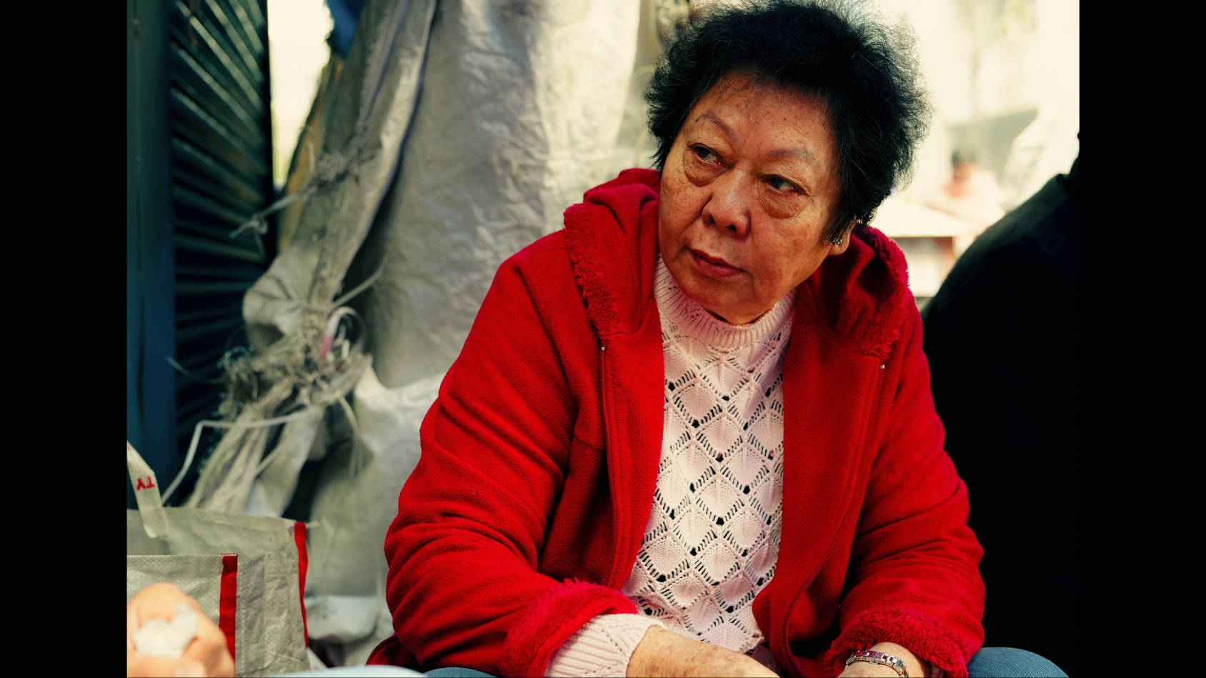 The breakfast market unfolds against the facade of Pou Hing, a popular Chinese eating house and continues to draw visitors. Across the street, a bustling vegetable market provides a green contrast to the Chinese delights.