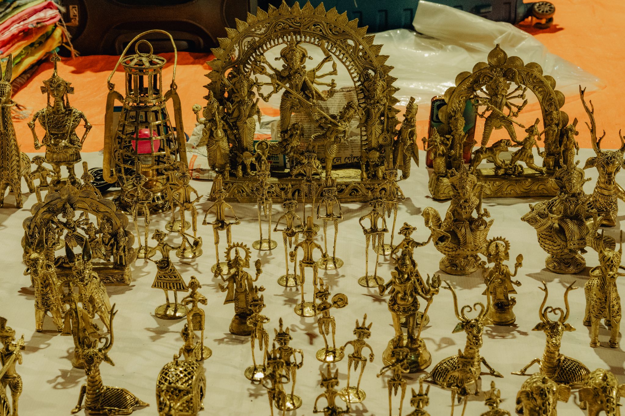 He makes everything from dokra idols of goddess Durga and her children, figurines playing musical instruments or at work, deer and other animals.