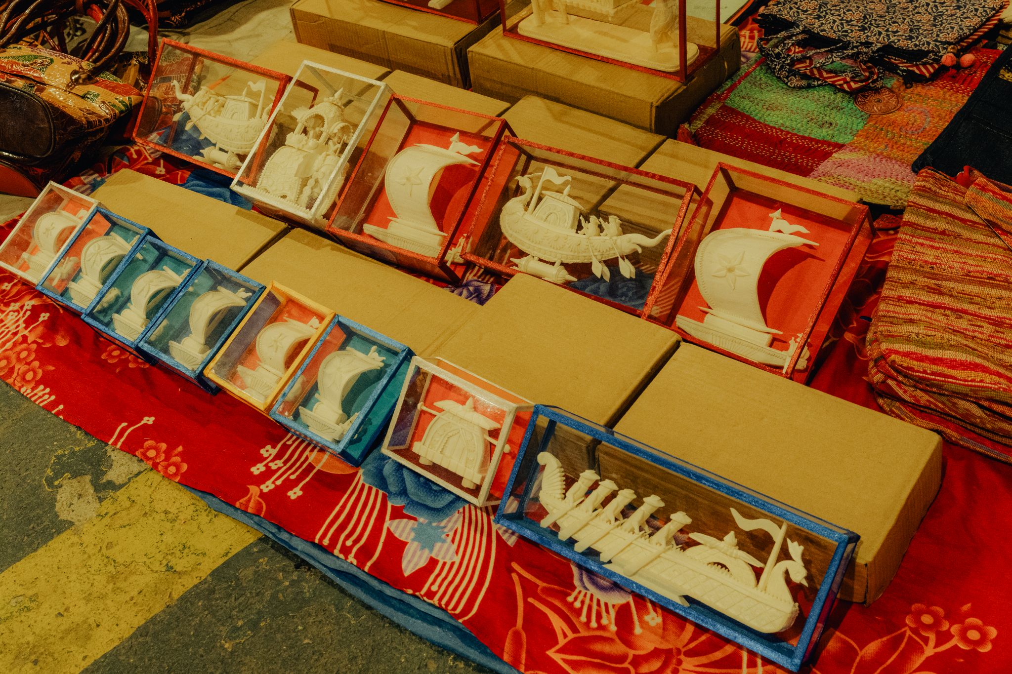 Ships, grand palanquins and royal elephants made of shola pith — the spongy core of the Indian Cork plant — are on sale at Sudip Sarkar’s stall at the far end of the haat. A third-generation artisan from Berhampore in Murshidabad, Sarkar says his items are in demand and he runs out of stock nearly every weekend. Priced between Rs 200 and 1,500, the shola items are eye-catching and intricate.