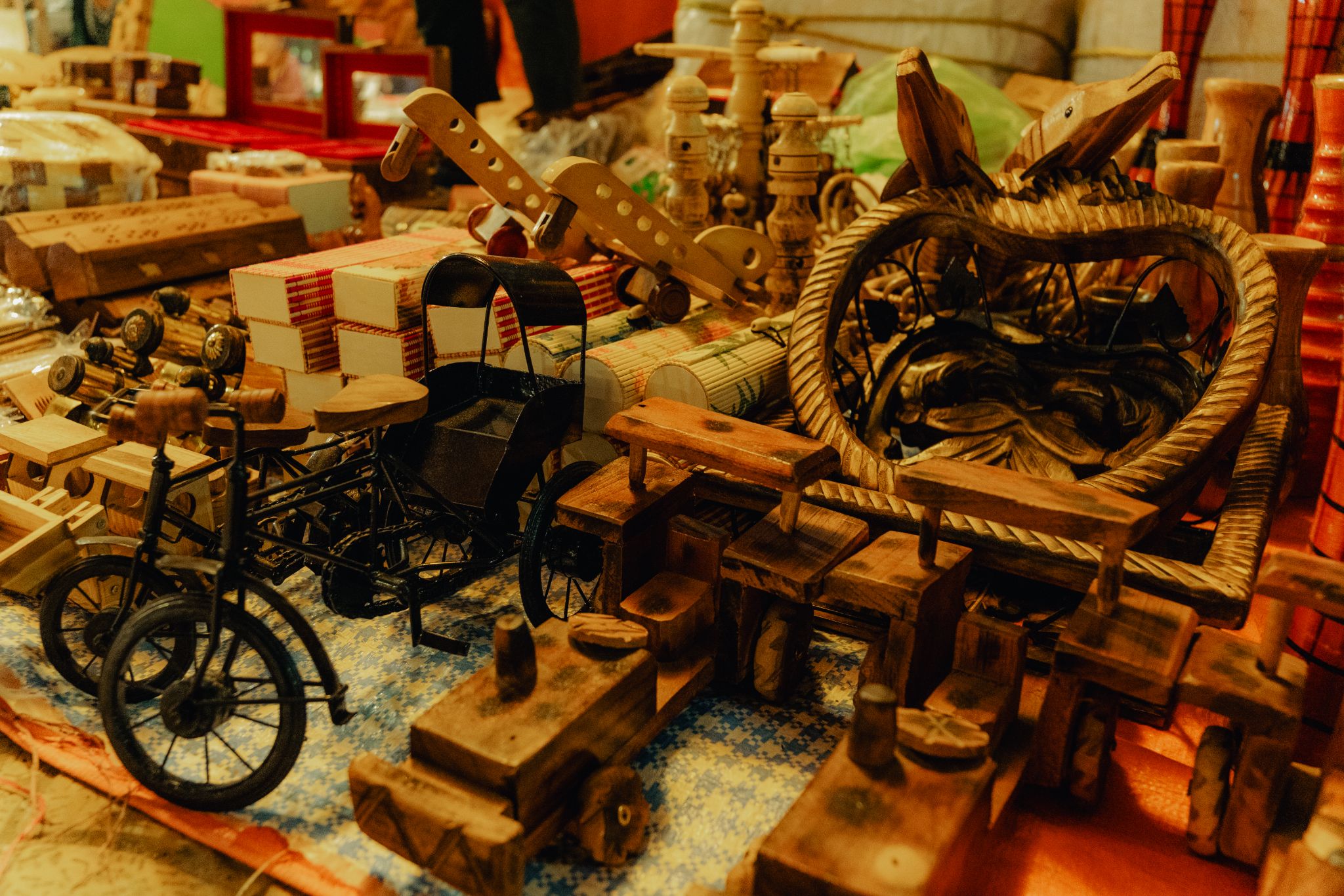 Models of animals, toy cars, boxes, bangle holders, utensils and many more different kinds of items in wood are on display right at the starting point of the haat. Artisan Mukhtar Hussain from Murshidabad also has a collection of mirrors at this stall. Prices start from Rs 30 and go up to Rs 5,000.