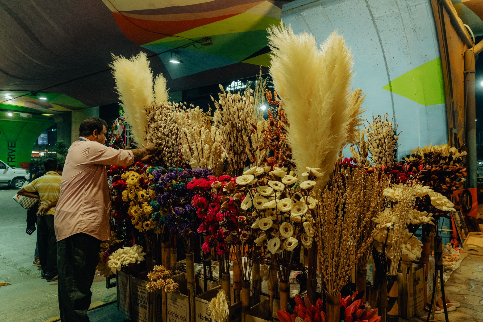 The stretch of road under the Axis Mall flyover in New Town turns into a colourful bazaar every weekend. From approximately 3pm to 9pm, strains of music waft in the evening air, often drowned out by the voices of vendors calling out to customers who bargain for the best rates.