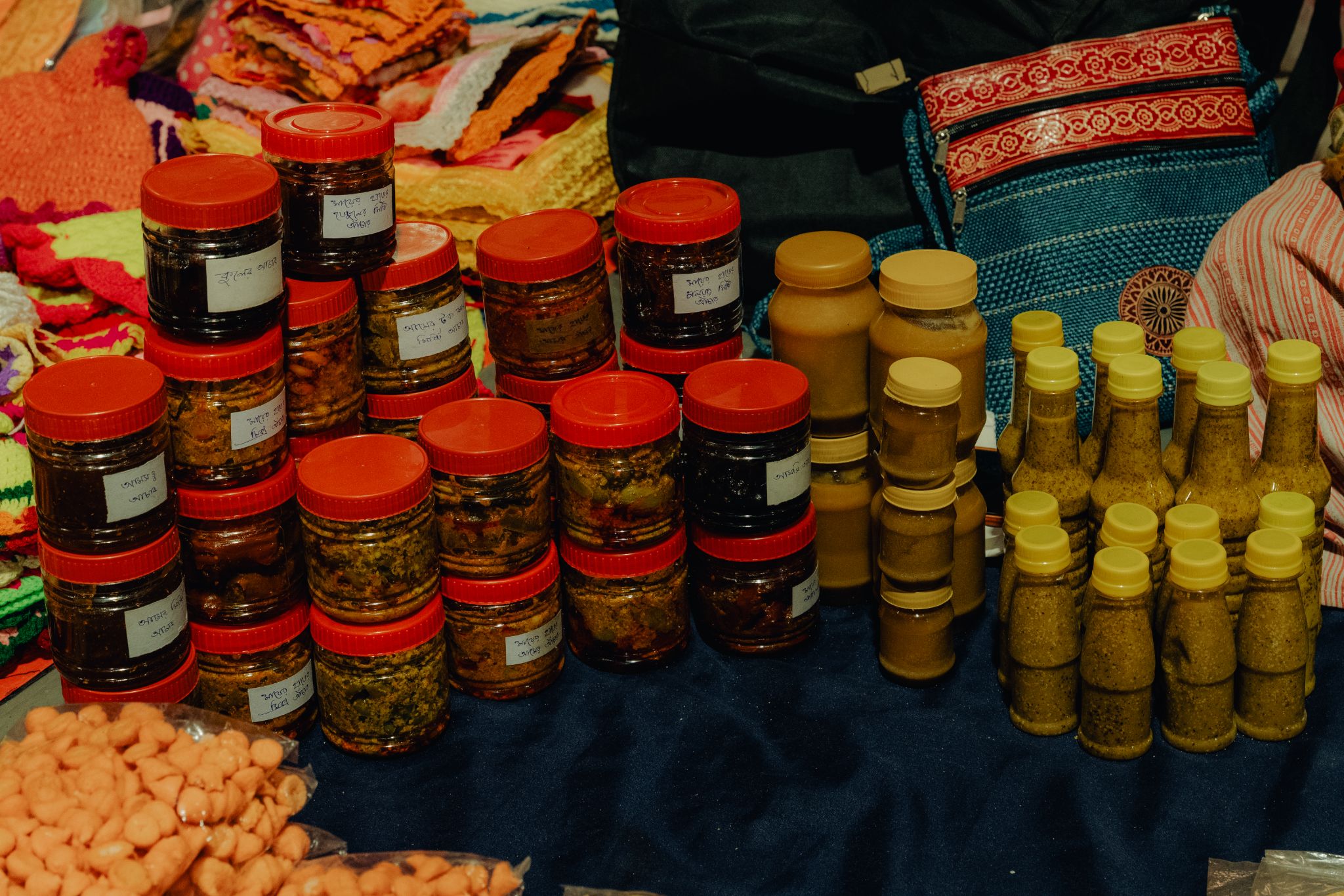 Nirupa Mondal from Mukundapur sets up a stall selling food items typical of Bengal, such as intricate goyna bori, nadus, chutneys and pickles. The items sold at Rs 20 to Rs 80 fly off the shelves in no time.